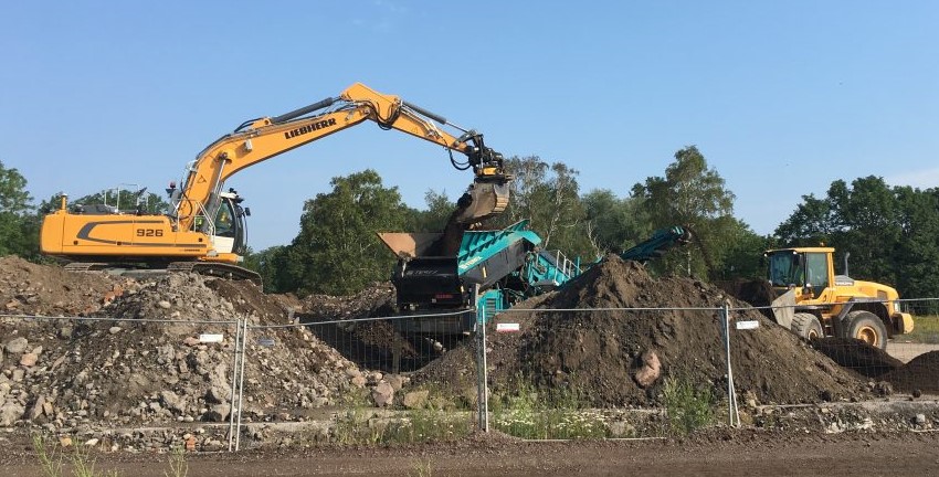 Vekstjordavtak, oppfylling og komprimering sprengstein, pukk og asfaltering. Grunnarbeid for kranfundamenter i betong. Etablering av kabelgrøft for strøm og fiber.
