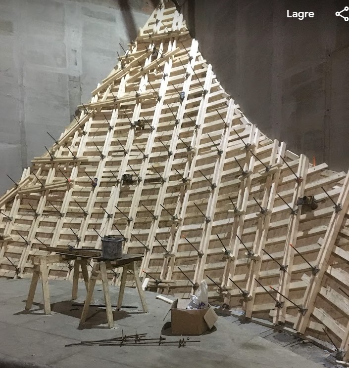 Oppføring av ca. 100 m lang, 10m høy natursteinmur av Larvikitt.